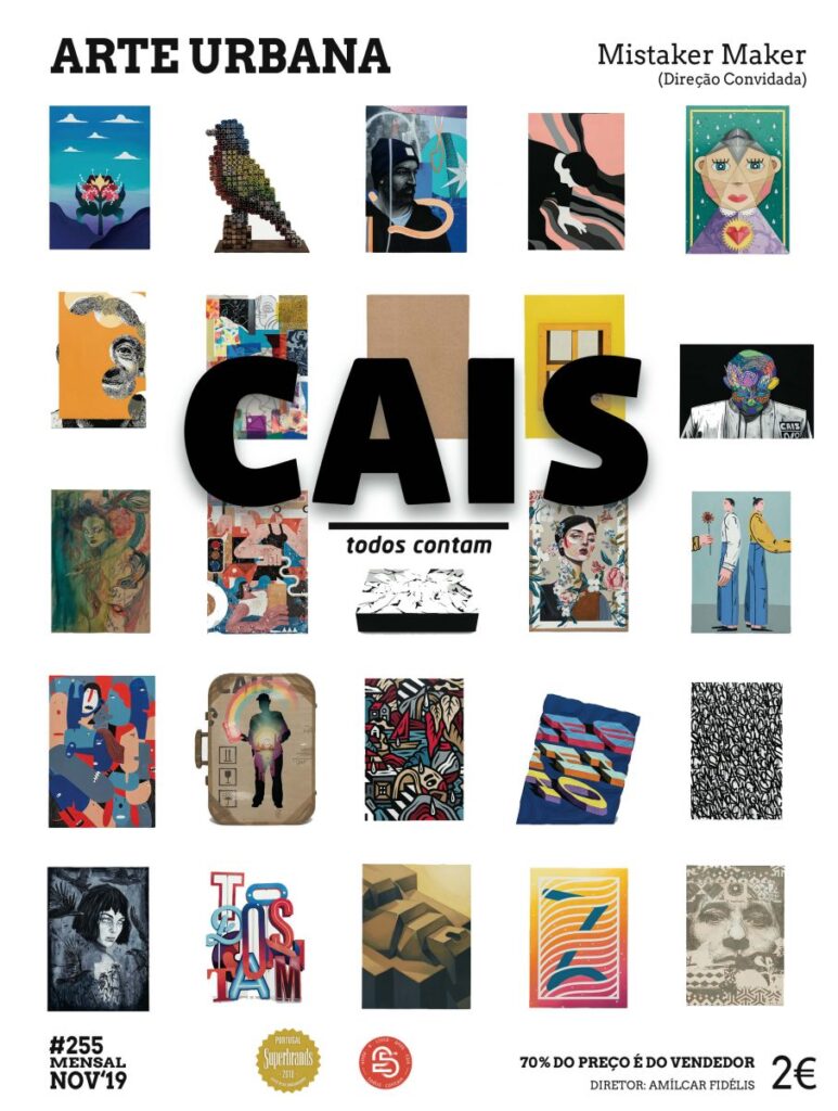 A Mistaker Maker, plataforma de intervenção artística responsável pela nossa exposição CAIS Urbana, é a direção convidada desta edição. As 25 peças de arte criadas especialmente para o nosso 25º aniversário vão ser leiloadas e também são destaque. Saiba mais sobre o leilão aqui.